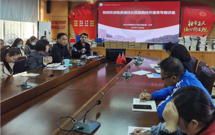 為加強(qiáng)學(xué)校德育教育,提升教師的德育工作意識(shí),增強(qiáng)教師們的幸福感,12月4日下午,開發(fā)區(qū)第一小學(xué)邀請(qǐng)開發(fā)區(qū)第四小學(xué)楊勇強(qiáng)副校長(zhǎng)為全體老師進(jìn)行了“你是快樂(lè)的,我就是幸福的”德育專題講座。匯報(bào)中,楊校長(zhǎng)懷著既高興又忐忑的心情,為全體老師們帶來(lái)了一場(chǎng)精彩的分享會(huì)。