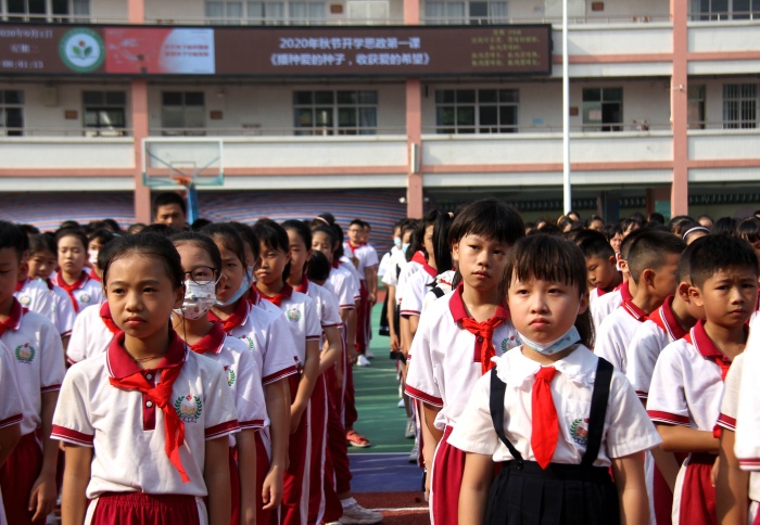 炎炎夏日即將過(guò)去,正是“風(fēng)暖花艷蒸蒸日上”之時(shí)。同學(xué)們度過(guò)了一個(gè)安全、快樂(lè)的暑假,滿(mǎn)懷著對(duì)暑假生活的美好記憶神采盎然地回到學(xué)校。在漸漸步入秋天的美好時(shí)光里,9月1日早上,開(kāi)發(fā)區(qū)第一小學(xué)乘風(fēng)破浪,為新學(xué)期的學(xué)生正衣冠、樹(shù)理想。全校師生精神飽滿(mǎn),齊聚校園操場(chǎng),隨著雄壯的國(guó)歌響起,鮮艷美麗的五星紅旗在校園里冉冉升起。升旗儀式結(jié)束后。劉光旗校長(zhǎng)以“播種愛(ài)的種子,收獲愛(ài)的希望”為主題,為全體師生上了一堂生動(dòng)而大氣的新學(xué)期第一節(jié)思政課。