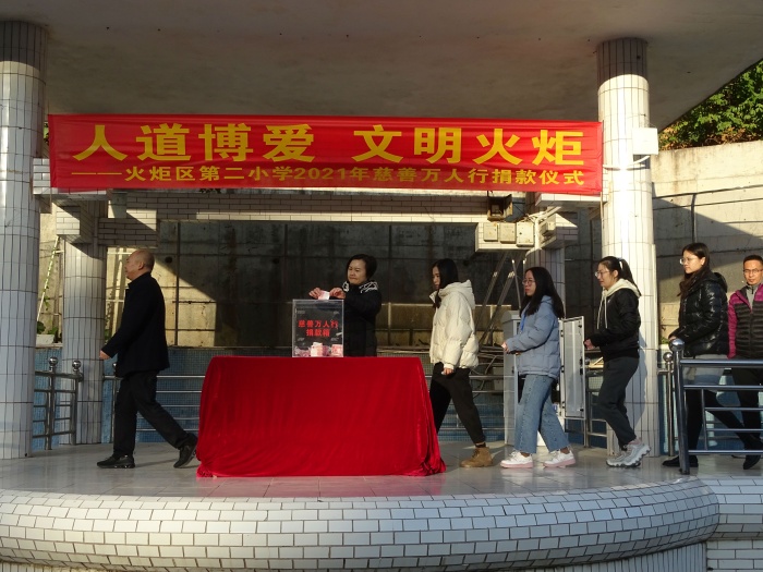 為積極響應(yīng)2021年市、區(qū)慈善萬人行活動倡議,弘揚(yáng)人道博愛精神,倡導(dǎo)中華美德,唱響新時代主旋律,營造互幫互助互愛的社會氛圍,為建設(shè)文明火炬區(qū)加快高質(zhì)量崛起貢獻(xiàn)力量,2020年12月31日上午,開發(fā)區(qū)第二小學(xué)舉行主題為“人道博愛,文明火炬”2021年慈善萬人行義捐活動。