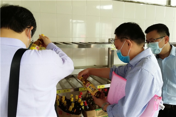 從進(jìn)校門開始,驗收組組長廖誠邊走邊看邊聽火炬區(qū)一中劉利民校長對學(xué)校防控工作和學(xué)生返校準(zhǔn)備情況的匯報。接著市教體、衛(wèi)健、市場監(jiān)管部門干部按照《中山市中小學(xué)校幼兒園學(xué)生返校準(zhǔn)備工作驗收表(第一版)》,通過現(xiàn)場查看、查閱資料、隨機訪談等形式,全面了解學(xué)生返校準(zhǔn)備情況。并就驗收表上57項工作指標(biāo),逐一核對相關(guān)資料是否齊全。