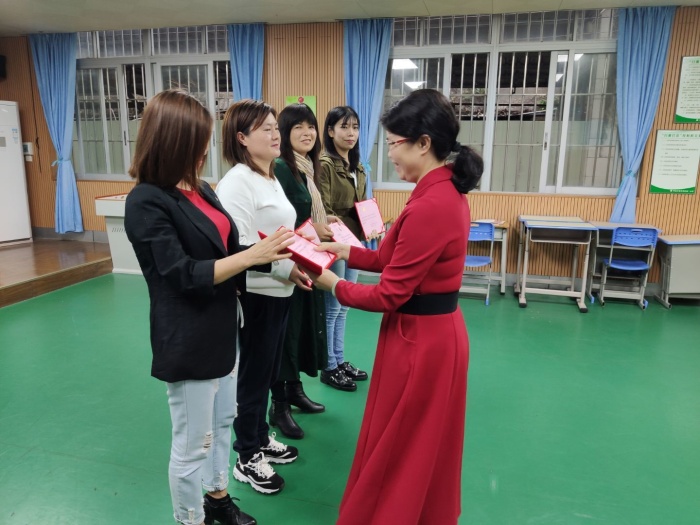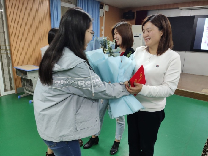 接著,陳老師宣讀結(jié)對名單,由今年新調(diào)入二小的四位青年教師和有經(jīng)驗的老教師結(jié)成了四組對子。隨后,四位師傅上臺接受周瑞珍校長頒發(fā)的聘書,徒弟向師傅獻(xiàn)花表達(dá)感激之情。一紙聘書,承載的是沉甸甸的囑咐;深深一躬,滿含著青年教師成長的渴望;緊緊相握的雙手,蘊含著師徒結(jié)對的濃濃情誼。相信每一對師徒都能攜手共進(jìn),共同成長。