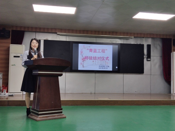 最后,該校周瑞珍校長結(jié)合當(dāng)今教育的新形勢,指出過硬的教師隊伍對于學(xué)生成長和學(xué)校發(fā)展的重要性。她希望師傅們能夠不負(fù)眾望,勇挑重?fù)?dān),做好對青年教師的教導(dǎo)工作。同時,她也希望新教師能制定好個人發(fā)展規(guī)劃,堅持多記錄、勤反思,爭取早日成長為所在學(xué)科領(lǐng)域的骨干教師。