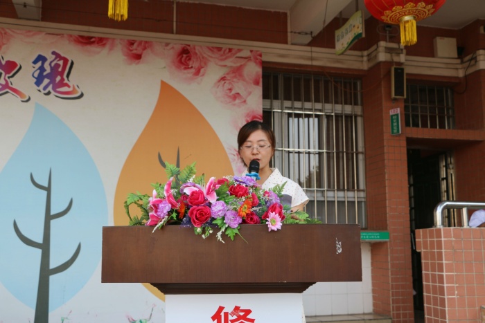 學高為師,身正為范。接下來,對甫小學的張倩老師發(fā)言。她通過在暑期中的閱讀,利用自己的專業(yè)優(yōu)勢,和同學們分享了閱讀的重要性。希望全校學生都能夠給自己制定閱讀目標,提升自己的閱讀能力,通過閱讀洗滌心靈。