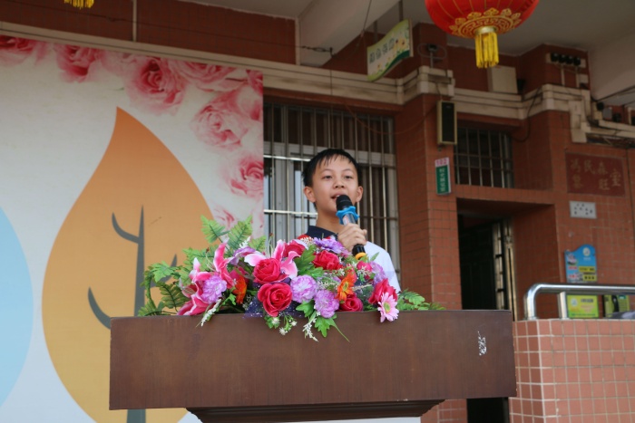 六(3)班的陳俊杰同學也在開學典禮上發(fā)表了他新學期的暢想。陳俊杰同學表示新的學年將嚴格自律,規(guī)范言行,用最飽滿的熱情和努力迎接新學期新生活,以此回報學校和老師們的精心培育。