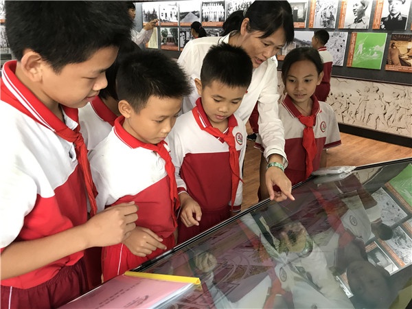 活動(dòng)結(jié)束后,石軍小學(xué)梁蔚菁校長(zhǎng)和少先隊(duì)大隊(duì)輔導(dǎo)員梁毅強(qiáng)老師帶領(lǐng)隊(duì)員們懷著崇敬的心情參觀了史跡展覽室里展出的歷史實(shí)物、珍貴照片和文獻(xiàn)資料。這些定格的瞬間和實(shí)物,生動(dòng)地再現(xiàn)了革命先輩和革命老區(qū)人民的光輝歷史和英雄事跡。