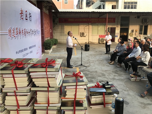 活動(dòng)在黃圃鎮(zhèn)石軍村村委書(shū)記郭宋華同志介紹參加這次活動(dòng)的領(lǐng)導(dǎo)嘉賓中拉開(kāi)了序幕?;顒?dòng)的第一個(gè)環(huán)節(jié)是贈(zèng)送革命書(shū)籍:由市老干局領(lǐng)導(dǎo),老戰(zhàn)士陳若同志、黃鳳蘭同志,原中山縣委書(shū)記梁奇達(dá)兒子梁凱明、黃圃籍珠縱老戰(zhàn)士郭大同女兒郭虹分別向石軍村、石軍小學(xué)、黃圃鎮(zhèn)各農(nóng)家書(shū)屋贈(zèng)書(shū)。石軍村黨委書(shū)記郭宋華同志、石軍小學(xué)梁蔚菁校長(zhǎng)及各農(nóng)家書(shū)屋負(fù)責(zé)人分別接受所贈(zèng)書(shū)籍。隨后進(jìn)入活動(dòng)的第二個(gè)環(huán)節(jié):由郭昉凌同志分享紅色革命故事。郭昉凌同志聲情并茂地講述了珠江縱隊(duì)的革命先輩在抗日戰(zhàn)爭(zhēng)時(shí)期不畏艱險(xiǎn)、敢于犧牲、英勇戰(zhàn)斗的故事,特別是駐守在石軍沙的羅若愚等同志,在艱苦的抗戰(zhàn)中不怕?tīng)奚?,?jiān)持與敵作戰(zhàn)。在座全體人員認(rèn)真聆聽(tīng),紛紛感慨沒(méi)有革命老前輩的英勇付出,就沒(méi)有今天在座人員的美好幸福生活。最后,活動(dòng)在黃圃鎮(zhèn)黨委委員李華軍同志的總結(jié)中結(jié)束。
