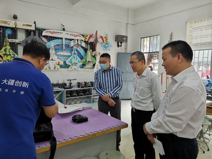 首先,民眾中心小學(xué)全體行政陪同客人參觀了校園,馬耀強(qiáng)校長(zhǎng)向黃鎮(zhèn)長(zhǎng)一行匯報(bào)學(xué)校疫情防控方面所做的工作,以及學(xué)校的基本設(shè)施及辦學(xué)情況。接著,大家先后來到定向越野和航空航模這兩個(gè)功能室,聽取相關(guān)負(fù)責(zé)老師的詳細(xì)介紹,了解學(xué)校定向運(yùn)動(dòng)及航空航模訓(xùn)練的開展情況,以及目前所取得的一些成績(jī)。最后,黃鎮(zhèn)長(zhǎng)一行與馬耀強(qiáng)校長(zhǎng)就學(xué)校的辦學(xué)規(guī)劃及特色項(xiàng)目的推進(jìn)進(jìn)行了詳細(xì)的交流。黃鎮(zhèn)長(zhǎng)對(duì)學(xué)校各項(xiàng)準(zhǔn)備工作給予了充分肯定,他強(qiáng)調(diào),學(xué)校要按照疫情防控指揮部統(tǒng)一部署,壓實(shí)責(zé)任,確保師生安全。他對(duì)學(xué)校創(chuàng)建特色項(xiàng)目方面取得的顯著成績(jī)給予高度的評(píng)價(jià)和充分的肯定,并對(duì)學(xué)校的規(guī)劃與及辦學(xué)理念充滿信心,黨委政府將大力支持學(xué)校的后續(xù)發(fā)展。
