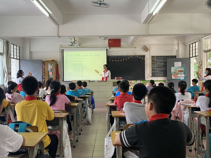講座中,主講賴?yán)蠋熛茸屚瑢W(xué)們觀看了關(guān)于“全國(guó)人口普查宣傳視頻”,談?wù)勛约旱囊恍┛捶?。接著,賴?yán)蠋熡致暻椴⒚叵蛲瑢W(xué)們講解人口普查小知識(shí),工作人員向同學(xué)們派發(fā)《致住戶的一封信》和《人普宣傳小冊(cè)子》,并親身示范展示普查員入戶時(shí)的標(biāo)準(zhǔn)著裝及流程。為了檢驗(yàn)孩子們是否掌握好相關(guān)知識(shí),開(kāi)啟了有獎(jiǎng)問(wèn)答環(huán)節(jié),同學(xué)們紛紛舉手搶答,回答問(wèn)題又快又準(zhǔn)。最后,老師鼓勵(lì)同學(xué)們積極自覺(jué)地行動(dòng)起來(lái),從自身做起,積極宣傳,讓大家生活的地球變得更加美麗和諧。