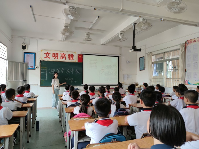 金秋十月,佳節(jié)連連?!笆弧睂⒅粒瑸橄灿瓏?guó)慶,歡度中秋。南朗旗風(fēng)學(xué)校于9月30日下午開(kāi)展了“迎國(guó)慶、賀中秋”的主題班會(huì)活動(dòng)。