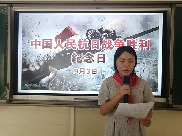 每年的9月3日是一個(gè)特殊的日子,今年是抗日戰(zhàn)爭(zhēng)勝利75周年的紀(jì)念日。何校長(zhǎng)從抗日戰(zhàn)爭(zhēng)勝利紀(jì)念日講起,各班級(jí)利用多媒體平臺(tái)觀看了中華民族抗戰(zhàn)史視頻和19歲的董存瑞舍身炸碉堡的電影片段,還講述了小英雄王二小、雨來、張嘎的抗戰(zhàn)故事,何校長(zhǎng)引領(lǐng)同學(xué)們致敬歷史,緬懷先烈,學(xué)習(xí)英雄們強(qiáng)烈的愛國(guó)心,成為一個(gè)真正勇敢的人!