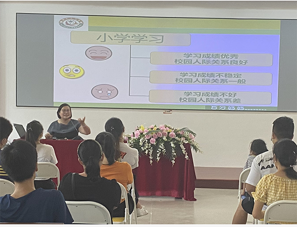 9點(diǎn)30分,一年級(jí)家長會(huì)議暨家庭教育講座在多媒體室舉行。活動(dòng)邀請(qǐng)到國家高級(jí)家庭教育指導(dǎo)師葉文芳老師給家長們作了“ 教育的長遠(yuǎn)目標(biāo)——培育在充滿挑戰(zhàn)的世界里健康向上的孩子”和“ 家校合力促進(jìn)孩子全面發(fā)展”為主題的講座。葉老師用通俗易懂的語言告訴家長如何引導(dǎo)孩子健康向上做一名快樂、優(yōu)秀的小學(xué)生,并強(qiáng)調(diào)家長不僅盡己所能支持鼓勵(lì)孩子成為最好的自己,也要以身作則成為孩子行為養(yǎng)成的導(dǎo)師。葉老師深入淺出的分析讓新生家長興趣大增,積極投入,贏得了家長們熱烈的掌聲。