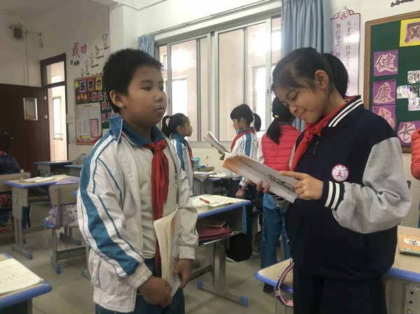 活動(dòng)中,孩子們精神抖擻,用真摯飽滿的情感和鏗鏘有力的語(yǔ)言,將《弟子規(guī)》《千字文》《論語(yǔ)》《中庸》《老子》《史記-資治通鑒》等經(jīng)典國(guó)學(xué)詩(shī)文進(jìn)行背誦考核。本次考核活動(dòng)形式由高年級(jí)的“考官”考低年級(jí)的學(xué)生,中高年級(jí)則班級(jí)之間互考,各語(yǔ)文教師組織監(jiān)考。各班校本課程《國(guó)學(xué)經(jīng)典》的通過(guò)率均超過(guò)98%,還有很多孩子熱愛(ài)國(guó)學(xué),超前誦讀學(xué)習(xí)國(guó)學(xué)經(jīng)典詩(shī)文。孩子們聲情并茂、朗朗上口的古詩(shī)文誦讀得到了語(yǔ)文老師們的稱贊,