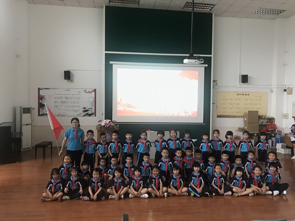 雄壯有力的出旗曲奏響了,就此拉開(kāi)了儀式的序幕。一年級(jí)隊(duì)員排著整齊的隊(duì)伍,響亮地唱起《中國(guó)少年先鋒隊(duì)隊(duì)歌》。鮮艷的隊(duì)旗下,大隊(duì)輔導(dǎo)員莫冰老師宣讀了“入隊(duì)決定”,并宣布新隊(duì)員名單。老隊(duì)員為新隊(duì)員系上了紅領(lǐng)巾,鮮艷的紅領(lǐng)巾在新隊(duì)員胸前飄揚(yáng),映紅了孩子們的笑臉。隨后莫冰老師宣布新成立的2個(gè)中隊(duì),同時(shí)聘任中隊(duì)和中隊(duì)輔導(dǎo)員,緊接著進(jìn)行的是宣誓,新隊(duì)員們鄭重地舉起右拳,在隊(duì)旗下莊嚴(yán)宣誓。中隊(duì)輔導(dǎo)員也對(duì)隊(duì)員們表示祝賀,希望新隊(duì)員們要有崇高的理想,要胸懷大志、勉勵(lì)全體少先隊(duì)員努力學(xué)習(xí),用自己的實(shí)際行動(dòng),為隊(duì)旗增光添彩。