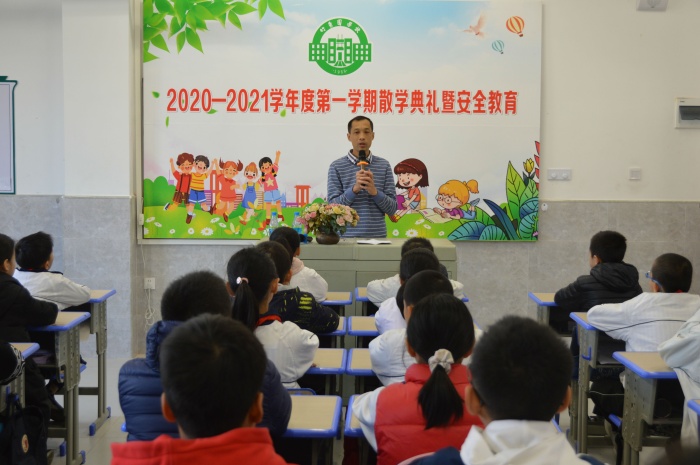 一路歡歌,一路笑語;一段征程,一份收獲。緊張而匆忙的秋季學期在不知不覺間悄然而逝,在全校師生的共同努力下,本學期的教育教學工作圓滿完成。為全面總結(jié)一學期來同學們在校的成長與發(fā)展,樹立典型,表彰先進,2021年1月15日上午,南區(qū)竹秀園中心小學舉行2020學年度秋季學期散學典禮暨安全教育。由于疫情的關(guān)系,此次散學典禮安排各班在教室進行。
