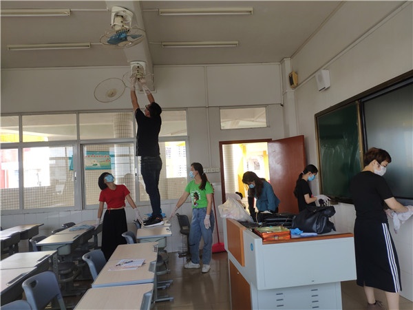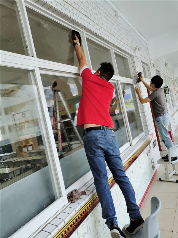 2020年的五一勞動節(jié),升輝小學的部分家長代表和全體老師們犧牲小假期,主動參與學校開展的返學大清潔行動中來,讓這個勞動節(jié)更加有意義。家長們在班主任、老師的指導和分配下,分別對教室、教師辦公室、走廊、圍欄等處進行清潔。校園內,教學樓上下,辦公室里外,隨處可見家長忙碌的身影,有的抹桌子,有的拖地板,有的搬桌椅,有的擦風扇、有的倒垃圾……家長們臉上都掛滿汗珠,但卻快樂地忙碌著。