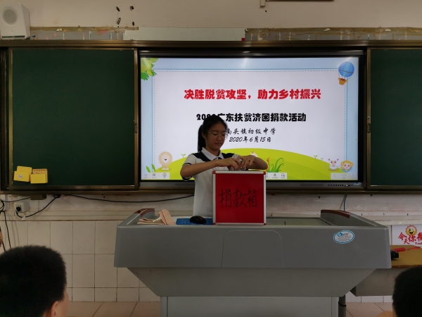2020年是全面建成小康社會(huì)目標(biāo)實(shí)現(xiàn)之年,是全面打贏脫貧攻堅(jiān)戰(zhàn)收官之年,也是“廣東扶貧濟(jì)困日”活動(dòng)10周年。根據(jù)省委、省政府、市政府的部署,今年“廣東扶貧濟(jì)困日”活動(dòng)的主題是“決勝脫貧攻堅(jiān),助力鄉(xiāng)村振興”。6月15日上午,南頭鎮(zhèn)初級(jí)中學(xué)利用升旗儀以班級(jí)為單位開展了2020扶貧濟(jì)困捐款儀式。