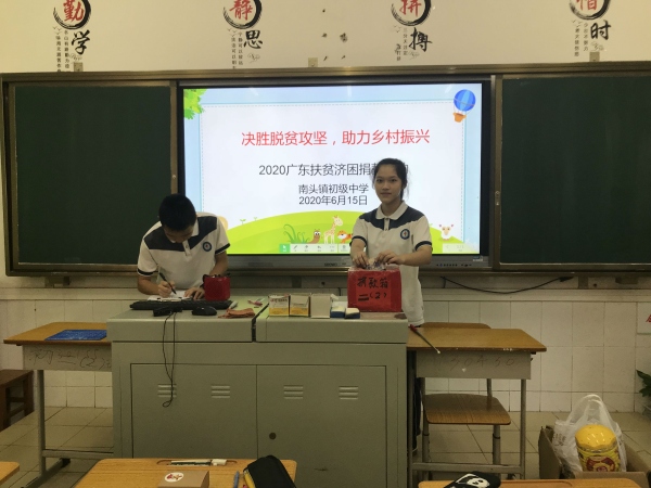 每年的6月30日是“廣東扶貧濟(jì)困日”。所募集款物重點(diǎn)用于幫扶我省建檔立卡的相對貧困村、貧困人口脫貧奔康。結(jié)合“博愛、創(chuàng)新、包容、和諧”的新時(shí)期中山人精神和全民修身行動(dòng),伸出溫暖的雙手,奉獻(xiàn)真摯的情誼,積極參與,各盡所能,群策群力幫助貧困地區(qū)、貧困群眾早日脫貧致富,讓弱勢群體過上幸福美好的生活。因此,南頭鎮(zhèn)初級(jí)中學(xué)廣泛發(fā)動(dòng)了全校學(xué)生積極參與本次捐款活動(dòng),為困難群體提供人道援助,營造互幫互助互愛的良好社會(huì)氛圍,傳承博愛人道精神。自本次活動(dòng)發(fā)出倡議后,同學(xué)們積極參與,學(xué)校倡議以“自愿奉獻(xiàn)”為原則,希望同學(xué)們用平時(shí)攢下來的零用錢來參加本次的濟(jì)困活動(dòng)。