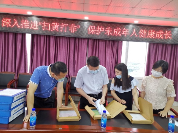 接著,檢查組一行到達(dá)三樓會議室聽取學(xué)校關(guān)于“掃黃打非”的專題匯報,并對本學(xué)年學(xué)校開展的“掃黃打非”專題活動之主題班會、視頻教育、繪畫比賽、讀書月等的活動方案、活動照片、會議記錄等一系列資料進(jìn)行詳細(xì)的檢查。