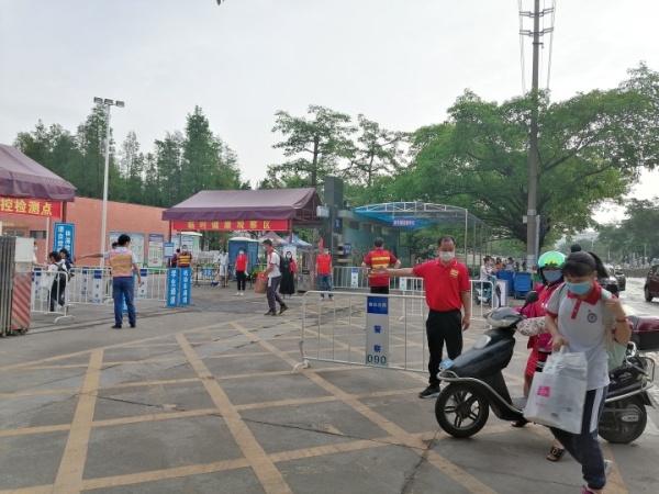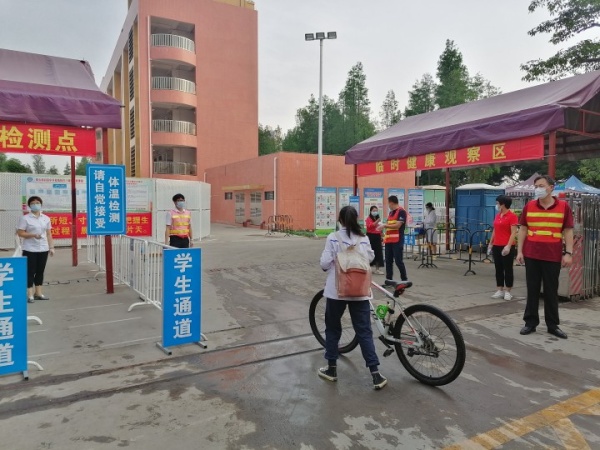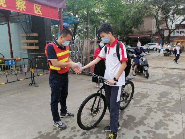中山市教育和體育局檢查組蒞臨南頭鎮(zhèn)初級中學檢查開學工作。在學校南門,同學們有序地相隔一米,自覺接受體溫檢測,檢測通過后,按照要求停放自行車,回教室安坐。在北門,科技助力學生返校,南頭鎮(zhèn)初級中學在校門口設置了人體熱感測溫系統(tǒng),可實現(xiàn)立馬測溫讓學生快速通過,避免扎堆。