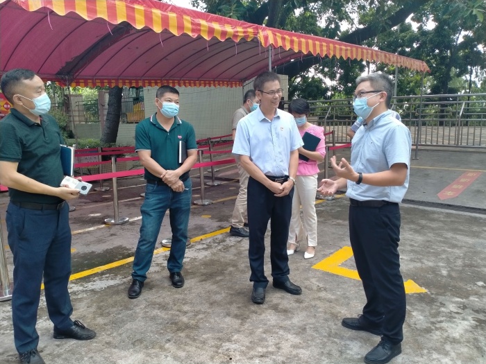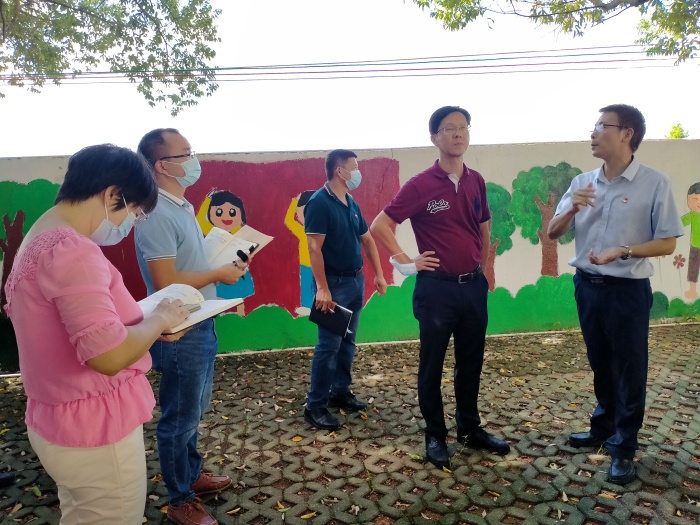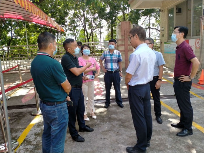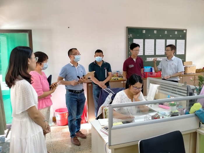 調(diào)研組在學(xué)校行政的陪同下巡視校園環(huán)境,細(xì)心詢問學(xué)校新學(xué)期防控工作落實(shí)情況,實(shí)地查看了學(xué)校運(yùn)動場、校園文化、教師辦公室、教室教學(xué)設(shè)備等。