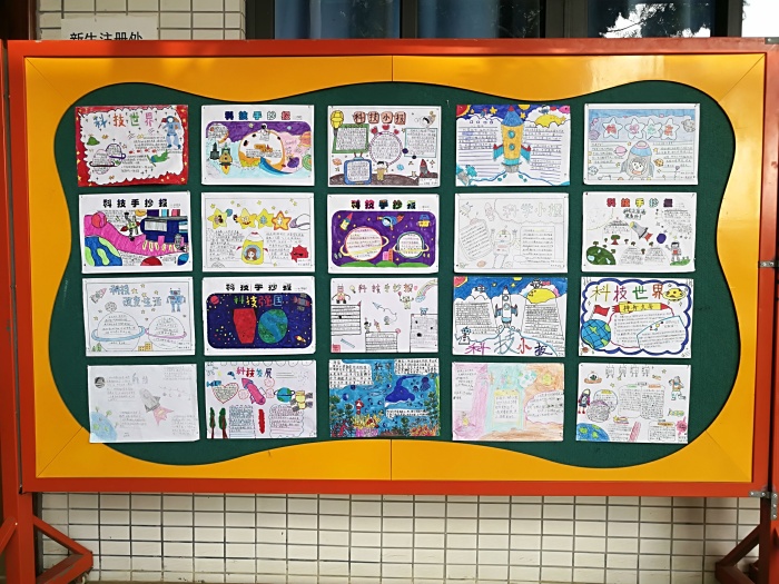 三到六年級的全體同學(xué)圍繞科學(xué)常識、科學(xué)成就、科學(xué)家的小故事、諺語等內(nèi)容出一期科技手抄報。在各班班主任的指點和協(xié)助下,查資料、勤學(xué)習(xí),集眾人智慧和才華,自己動手出了一張主題鮮明突出、內(nèi)容健康向上、設(shè)計新穎美觀、具有兒童情趣、富想象創(chuàng)造的科技手抄報。