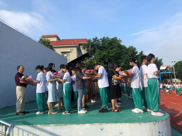活動(dòng)的第一個(gè)環(huán)節(jié),學(xué)生們手捧崔煥英校長為各位老師精心定制的鮮花,滿懷敬意地獻(xiàn)給可親可敬的老師。全校48位老師接過代表學(xué)生們真摯的祝福、衷心的感謝的鮮花,美麗的笑容在他們臉上綻放,幸福的感動(dòng)在他們心中流淌。第二個(gè)環(huán)節(jié),由全校學(xué)生齊唱著《感恩的心》,以表達(dá)對老師諄諄教誨的感激之情,場面十分震撼。