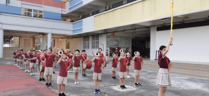 上午8:30,運(yùn)動(dòng)員進(jìn)行曲響起,各班有序列隊(duì)按照指定路線到達(dá)學(xué)校篤行堂參加莊重的升旗儀式,鼓號(hào)隊(duì)員精神抖擻,鼓聲整齊劃一,旗手捧著鮮艷的國(guó)旗正步走到旗桿下,隨著國(guó)歌的響起緩緩升起了國(guó)旗,隊(duì)員們肅立敬禮!