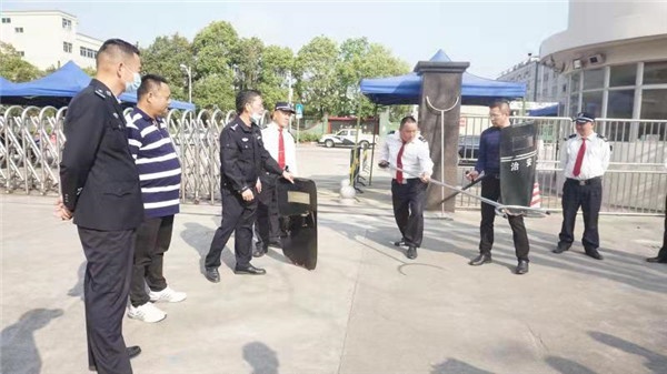 下午3時50分,“突發(fā)暴力入侵校園”安全演練開始。廣播警報聲響起,總務處黃立冬主任隨即通知全體師生進入緊急戒備狀態(tài),全校學生迅速返回教室, 21位班主任立刻進入班級組織班上學生關(guān)好門窗、拉上窗簾、堵住門窗,安靜地躲藏課桌下。辦公室的其他教師立即召喚在教學區(qū)玩耍的同學到辦公室靜聲躲藏。學校維穩(wěn)隊員馬上出動支援保安,上前協(xié)助阻止、制伏“歹徒”。與此同時,接到“警情”的白石派出所郭盛本副所長等6名民警趕到現(xiàn)場,警報解除。演練結(jié)束。黃立冬主任總結(jié)了此次演練的成功與有待提升之處,之后由班主任根據(jù)班級演練情況進行總結(jié)。此后,在派出所郭副所長的指揮下,吳寶強警員現(xiàn)場向全體保安和男老師教授、示范怎樣有效使用防暴武器,怎樣安全快速地阻止、擒拿入侵人員,確保師生安全、校園安全。各維穩(wěn)隊員學得認真,并親身實踐。
