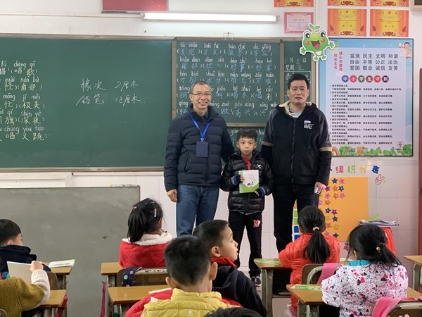檢查組首先到中心小學二(2)班課室為王良政同學頒獎,王良政的作品《愛眼問答比賽》在2020年全國愛眼日廣東省中小學生愛眼護眼作品征集活動榮獲攝影作品小學組優(yōu)秀獎。中山市衛(wèi)生局領導祝賀王良政同學獲獎,并倡議同學們要向他學習。隨后,何主任為二(2)班的孩子發(fā)放了“關注眼睛健康、遠離近視眼”資料,并對學生開展了近視防控講座,讓學生了解到近視的危害,如何預防近視,愛護眼睛。