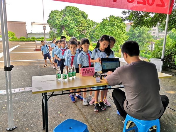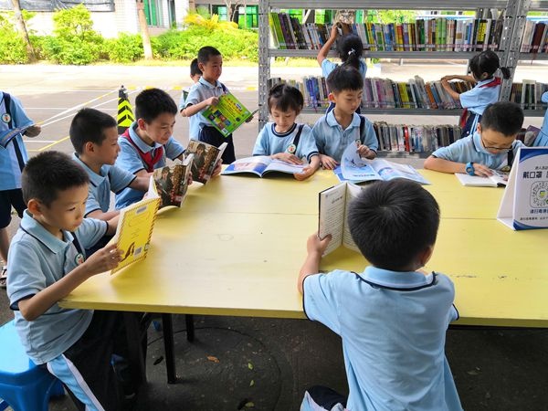 這是在做什么?原來是沙溪鎮(zhèn)中心小學為增強學生的閱讀興趣,增加閱讀量,提高閱讀技能,便結合中山紀念圖書館的流動圖書服務,開展“流動圖書進校園”活動,以讀書活動為契機,引領和推動學校讀書活動的開展,形成讀書氛圍,推動書香校園建設。本次活動在學校副校長劉美霞和語文科組長劉綺云老師的安排指揮下分年級有序地開展。活動現(xiàn)場工作人員在為學生介紹圖書借閱流程的同時,耐心講解流動圖書服務,并現(xiàn)場為有需要的學生辦理讀者證。對這一嶄新的閱讀形式,學生們興致高昂,迫不及待地選擇自己喜歡的圖書,津津有味地讀起來。活動結束后,學生們依依不舍地把書放回原位置,意猶未盡。已辦理讀者證的同學則興高采烈地辦理好借閱手續(xù),帶著心愛的圖書回家繼續(xù)遨游書海。