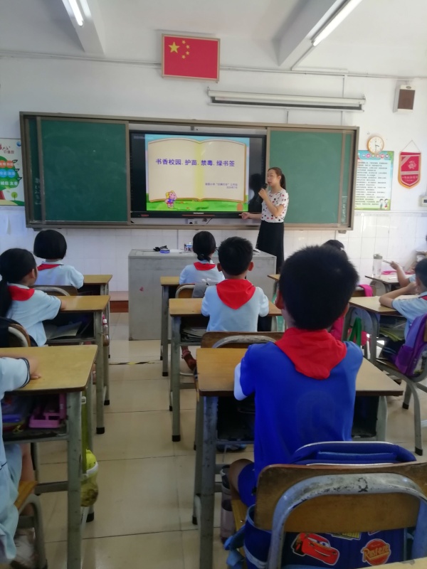 6月29日,沙溪鎮(zhèn)港園小學全校開展以“書香校園·護苗·禁毒·綠書簽”為主題的班會課活動。