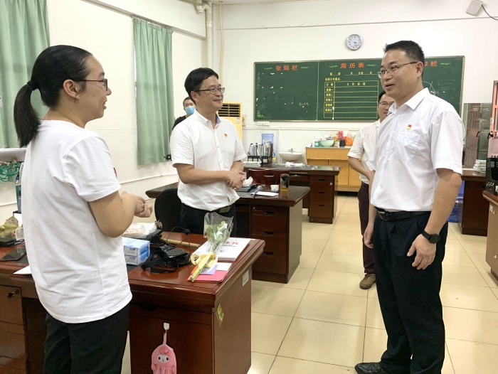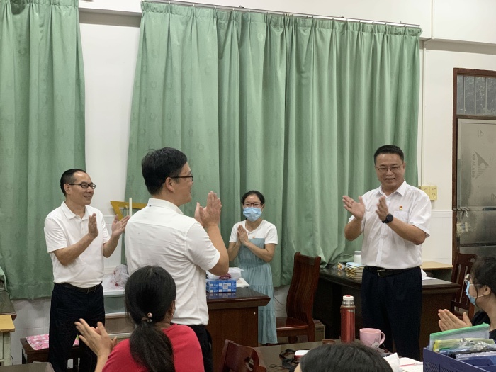 時(shí)維九月,碩果盈枝。2020年9月10日下午,沙溪鎮(zhèn)黨委副書(shū)記、鎮(zhèn)長(zhǎng)徐業(yè)恒,黨委委員黎炳堅(jiān)、黨政辦主任彭泳勇、教育指導(dǎo)中心主任汪鋒一行蒞臨沙溪中學(xué)開(kāi)展走訪慰問(wèn)活動(dòng),向勤勉耕耘在教育教學(xué)一線的全體教職工致以節(jié)日的祝福和誠(chéng)摯的問(wèn)候。