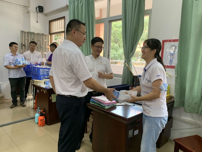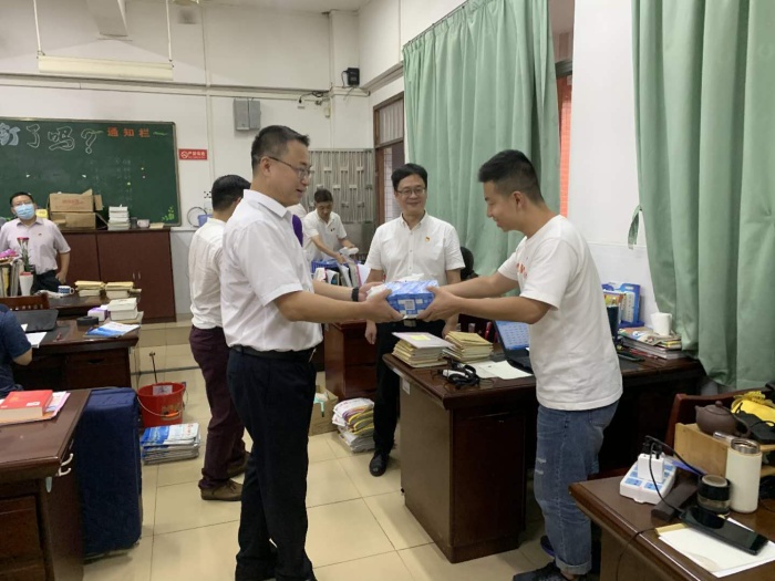 徐鎮(zhèn)長(zhǎng)一行走進(jìn)各年級(jí)各學(xué)科辦公室,親切詢(xún)問(wèn)了老師們的工作、生活情況,轉(zhuǎn)達(dá)了沙溪鎮(zhèn)黨委、政府對(duì)老師們的關(guān)懷和慰問(wèn),親手向老師們送上節(jié)日慰問(wèn)品,感謝老師們?cè)诮虝?shū)育人崗位上的辛勤耕耘。徐鎮(zhèn)長(zhǎng)肯定了沙溪中學(xué)老師們的教育教學(xué)成績(jī)和目前所展現(xiàn)出來(lái)的精神風(fēng)貌,鼓勵(lì)大家要深入鉆研教學(xué)業(yè)務(wù),踐行教學(xué)改革。
