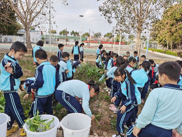 2月24-26日下午,學校采取錯峰分批的方式,把全校學生分成三大組,分別在不同時段前往學?!凹诜w園”開展除草活動。在老師們的指導下,同學們對勞動任務進行了合理分工,活動還沒開始,同學們就摩拳擦掌,躍躍欲試。老師一聲令下,只見一個個小可愛拿著笤帚、垃圾桶等清潔工具,熱火朝天地投入到勞動實踐中去……大家分工明確、相互協(xié)作,充分發(fā)揚不怕苦、不怕臟、不怕累的優(yōu)良傳統(tǒng),清理“稼穡園”中的雜草,努力提升它的“顏值”。
