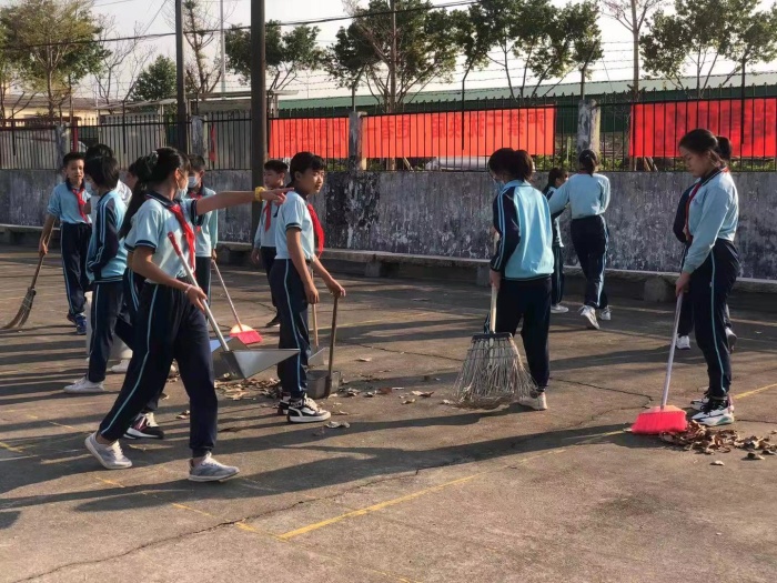 在開學前,同學們在家長的帶領下,全面打掃教室各個角落,清理地面上的污漬,清除教室里的雜物,擦洗課桌椅、黑板、玻璃窗臺上的污漬等。在各班的包干區(qū),同學們頂著陽光撿起干枯樹葉,夾起角落里的每一張紙屑,把每一處都打掃得干干凈凈。在勞動中,孩子們一張張紅撲撲的臉,伴著笑容在校園里顯得格外靚麗。
