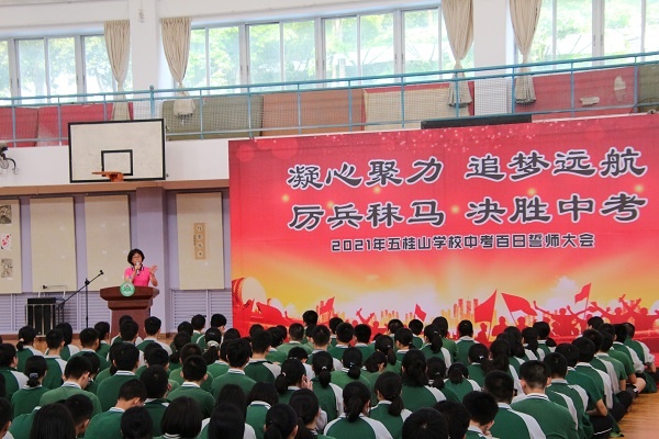 三年的汗水,千日的付出,終將結(jié)成六月的碩果。誓師大會(huì)上,老師們集體宣誓,要為學(xué)生們保駕護(hù)航精心備考;家長們鄭重承諾,要成為孩子們最堅(jiān)定的支持者,全力以赴為孩子們做好一切與中考有關(guān)的后勤保障。最后,五桂山學(xué)校黨支部書記陳玉玲同志致辭,她希望同學(xué)們以百年黨史作為精神食糧激勵(lì)自己,少一些浮躁,多一些行動(dòng),以飽滿的熱情,堅(jiān)定的信念,迎難而上,以最佳的精神狀態(tài)和最充分的知識(shí)儲(chǔ)備迎戰(zhàn)中考。