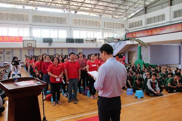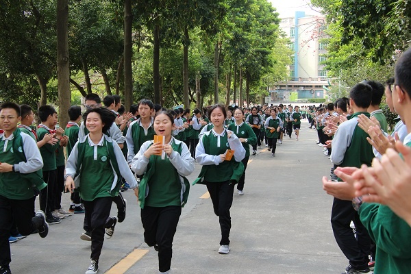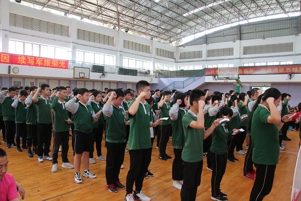 當(dāng)天上午,五桂山學(xué)校全體初三學(xué)生在老師、家長和學(xué)弟學(xué)妹們熱烈的掌聲中精神抖擻地跑入會(huì)場,各班依次喊出自己班級(jí)的口號(hào),點(diǎn)燃了現(xiàn)場的氣氛。