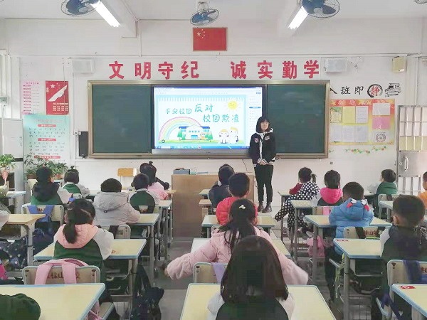 在主題班會上,各班班主任展示了校園欺凌給受害者帶來的傷害及嚴(yán)重后果,從“中小學(xué)生的哪些行為是屬于校園欺凌”、“校園欺凌會造成哪些危害”等方面對有關(guān)校園欺凌的常識進(jìn)行講解,使學(xué)生了解了校園暴力的危害。同時,引導(dǎo)學(xué)生識別校園欺凌,遇到校園暴力時,如何保護(hù)自己,要敢于向校園欺凌說“不”,學(xué)會正確處理同學(xué)之間的關(guān)系。