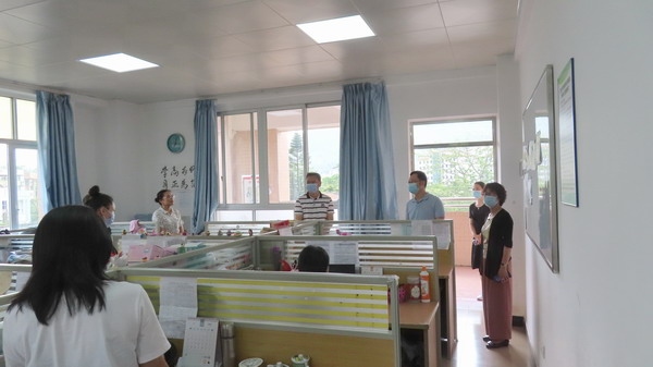 隨后,余主任來到教師辦公室,看望了正在為學(xué)生返校忙碌的老師們。一句“老師們,你們辛苦啦”讓現(xiàn)場的老師感受到五桂山黨工委、辦事處對(duì)教育、對(duì)老師的關(guān)心與厚愛。余主任代表黨工委、辦事處感謝在新冠肺炎防控的特殊時(shí)期,老師們在線上教學(xué)與防疫工作所付出的努力,要求老師們要高度重視學(xué)生的身心健康,做好學(xué)生復(fù)學(xué)后的心理健康教育與引導(dǎo)工作,為學(xué)生的健康成長保駕護(hù)航。