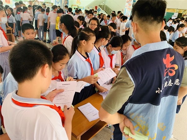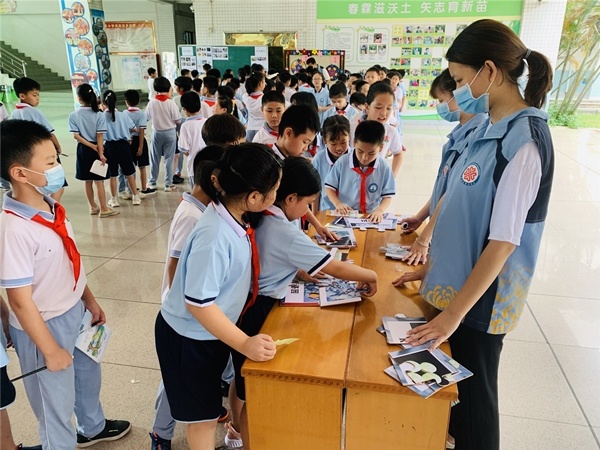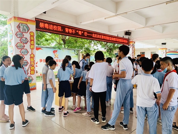 為進(jìn)一步推進(jìn)學(xué)校禁毒宣傳工作的普及,充分發(fā)揮學(xué)校教育在毒品預(yù)防教育活動(dòng)中的重要作用,使廣大學(xué)生認(rèn)清毒品的危害,進(jìn)一步增強(qiáng)防毒、拒毒意識,確?!皩W(xué)生不涉毒、校園無毒品”,在6.26國際禁毒日來臨之際,北區(qū)小學(xué)聯(lián)合北區(qū)社區(qū)開展“禁毒進(jìn)校園,青春不毒行”禁毒預(yù)防宣傳教育進(jìn)校園系列活動(dòng),6月24日上午,由社區(qū)組織的禁毒宣傳知識攤點(diǎn)小游戲在學(xué)校教學(xué)樓一樓大堂拉開帷幕。