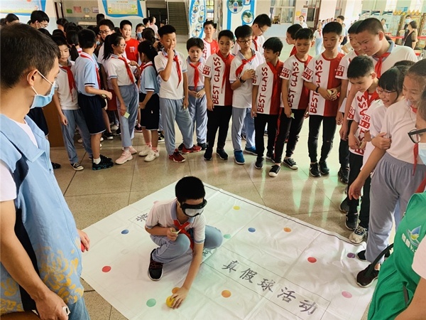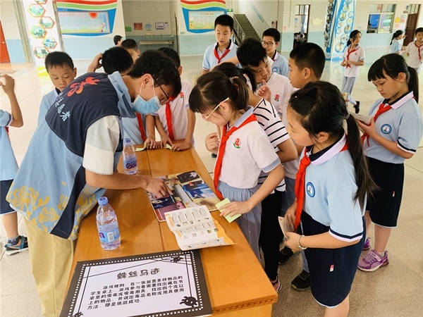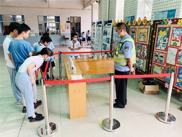 上午第一節(jié)課下課后,北區(qū)小學(xué)大堂人聲鼎沸,由社區(qū)組織的禁毒宣傳知識攤點(diǎn)小游戲在正如火如荼地開展著,學(xué)校三至六年級的學(xué)生分批參加各個(gè)攤點(diǎn)的小游戲,通過小游戲認(rèn)識毒品、學(xué)習(xí)毒品知識,現(xiàn)場還設(shè)置了禁毒宣傳展覽,向?qū)W生形象地展示了真實(shí)的毒品是什么樣的。各個(gè)攤點(diǎn)的小游戲更是趣味與知識相結(jié)合:乒乓球投籃,學(xué)生要認(rèn)識球上面的毒品名稱并投進(jìn)相應(yīng)的籃子為挑戰(zhàn)成功;禁毒知識問答,學(xué)生要答對答題卡上五道與禁毒知識有關(guān)的題目,學(xué)會分辨毒品;蛛絲馬跡,學(xué)生需要找出藏在書桌里的毒品或吸毒用具,并說出物品的名稱或使用方法,即為挑戰(zhàn)成功;還原真相:將桌上打亂的圖拼好,并說出物品的名稱。