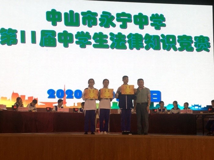 中山市永寧中學(xué)舉辦第11屆中學(xué)生法律知識競賽活動發(fā)布時間:2020-10-12 10:10 信息來源:本網(wǎng)站 瀏覽次數(shù):0