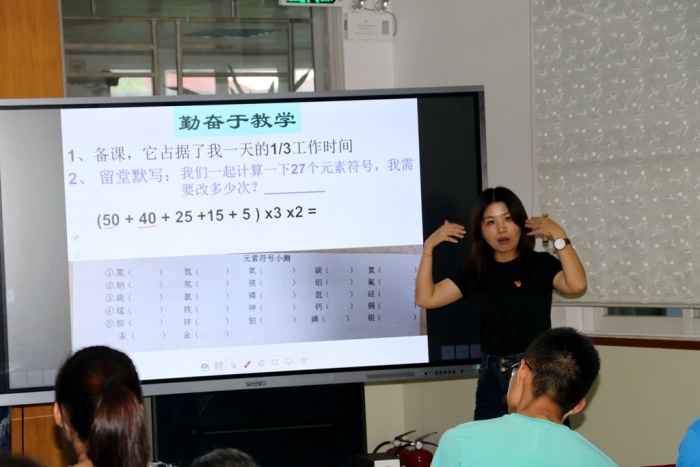 本次“身邊的榜樣分享會”分別由優(yōu)秀教師代表包小滿老師、黃瑞芳老師進行分享交流。包小滿級長以《疫情下的2020屆中考備考》為專題,從級長管理崗位的角度與老師們分享了初三團隊拼搏中考的經(jīng)歷。包級長帶領(lǐng)初三班主任、備課組長以及全體初三科任老師,發(fā)揮每個老師最大的積極性,勤奮實干,不計較,不抱怨,讓整個年級充滿著正能量,甘于奉獻成為了初三年級教師的主旋律。黃瑞芳老師分享《心有詩和遠方》,則從教師個人成長的角度介紹她作為一位成功班主任的工作和體會。黃老師勤奮于教學(xué)、潛心于育人、執(zhí)著于個人專業(yè)發(fā)展的孜孜不倦的追求,執(zhí)著于對學(xué)校的熱愛、對學(xué)生的關(guān)愛和責(zé)任、對同事的熱情和真誠,贏得了同事們的肯定,贏得了無數(shù)學(xué)生和家長的熱愛和尊敬。參與分享的老師們不時會意地點頭認(rèn)同,不時為精彩而發(fā)出笑聲,不時報以熱烈的掌聲。