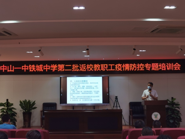 疫情防控關(guān)系到每一位師生的安全,開學(xué)工作關(guān)系到千家萬戶的生活。隨著初三年級順利返校復(fù)學(xué),中山一中鐵城中學(xué)按照省教育廳的文件精神,全體教職工團結(jié)一心,群策群力,于5月4日下午召開了初一、初二級全體教職工疫情防控專題培訓(xùn)會議,積極落實防疫工作,精準(zhǔn)做好初一、初二順利復(fù)學(xué)返校準(zhǔn)備。