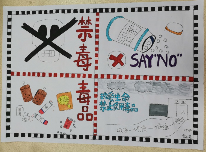 毒品的危害,不僅關(guān)乎人的健康和生命,而且關(guān)乎家庭幸福和存亡,以及社會(huì)安全和發(fā)展。為加強(qiáng)禁毒宣傳教育,使全校師生繼續(xù)知曉毒品危害,打造遠(yuǎn)離毒品、健康生活、文明成長(zhǎng)的育人環(huán)境。2020年9月21日到24日,中山一中西區(qū)中學(xué)舉行禁毒主題繪畫(huà)活動(dòng),這不僅為翠景橋底的禁毒涂鴉活動(dòng)進(jìn)行了素材征集,更增加禁毒宣傳趣味性,使學(xué)生們?cè)诶L畫(huà)特長(zhǎng)中寓畫(huà)于樂(lè),有所收獲。