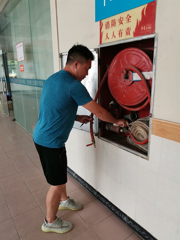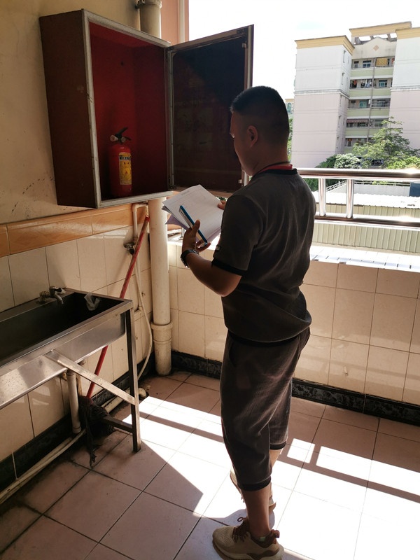 6月12日上午,在檢查消防設(shè)施時(shí),林主任強(qiáng)調(diào):分工合作,檢查工作要細(xì)致,發(fā)現(xiàn)問(wèn)題及時(shí)解決或上報(bào)。具體分工是:林主任負(fù)責(zé)檢查一樓及飯?zhí)玫南涝O(shè)施,林鐘坤老師負(fù)責(zé)檢查教學(xué)樓二樓,羅宇老師負(fù)責(zé)檢查三樓,潘尚真老師負(fù)責(zé)檢查四樓。檢查情況如實(shí)匯報(bào)給林主任。林主任針對(duì)存在的問(wèn)題馬上作出整改,如消防箱里的滅火器不夠,林主任和老師們從庫(kù)房取出補(bǔ)充到相應(yīng)的消防箱里。羅老師在檢查中發(fā)現(xiàn)個(gè)別消防栓的水閥有生銹和被腐蝕的現(xiàn)象,林主任知道后便通知專(zhuān)業(yè)人員進(jìn)行維修。與此同時(shí),潘老師和林老師反映個(gè)別消防栓出水慢和小的問(wèn)題,林主任也全部列出清單進(jìn)行整改,大部分問(wèn)題當(dāng)天已完成整改。
