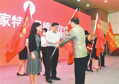 向醫(yī)療專家特派員授旗。本報記者 文波 攝