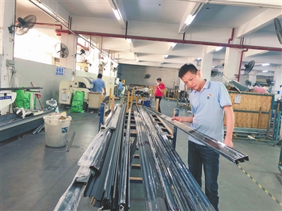 唐志喜在車間檢查材料。