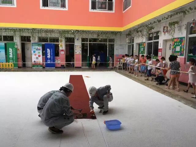 坐落在上海閔行區(qū)的叮叮幼兒園,是在上海的行業(yè)標(biāo)準(zhǔn)出臺(tái)后,率先鋪上安全塑膠地坪的教育機(jī)構(gòu)之一。幼兒園在近期對(duì)現(xiàn)有戶外運(yùn)動(dòng)場(chǎng)地的改造中,使用了巴斯夫全新開發(fā)的運(yùn)動(dòng)地坪解決方案(環(huán)保加耐候型聚氨酯體系Elastan?, Elastocoat? 結(jié)合E-TPU泡沫顆粒 ),不僅施工方便,更不會(huì)對(duì)人體產(chǎn)生危害(包括施工人員)。