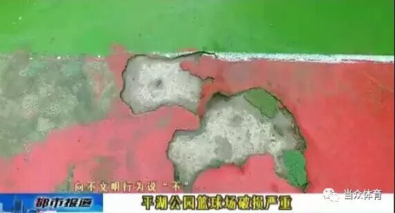 根據(jù)媒體5月初的報道,平湖公園全民健身廣場的籃球場也是破損嚴(yán)重。